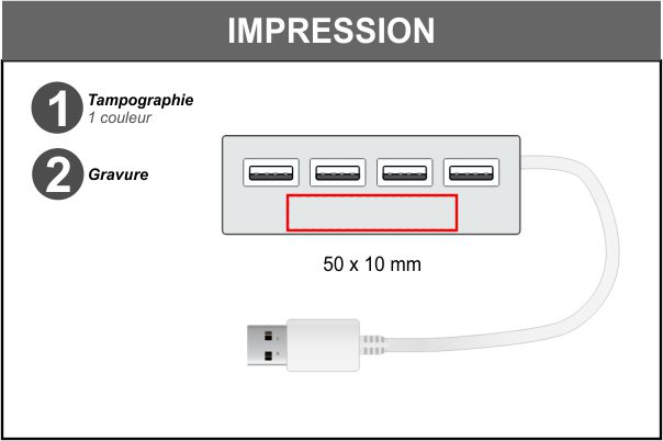 4 ports USB pour le chargement et le transfert de données. Entrée DC 5V/1A.