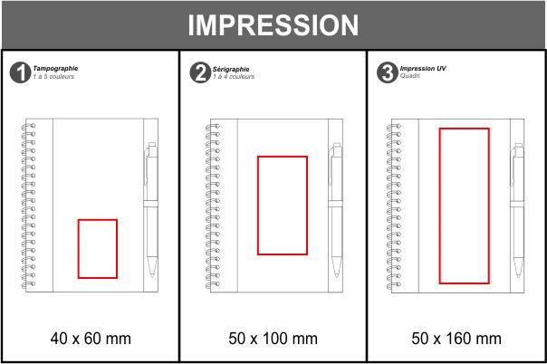 Reliure à spirale, style de couleur avec encre bleue, couverture en carton avec élément de couleur au niveau de la reliure.