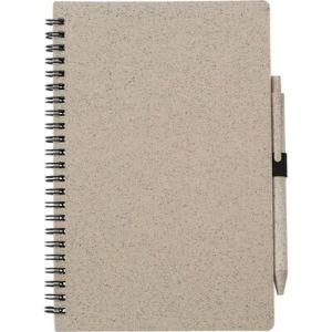 Carnet A5 avec stylo bille en paille de blé, PP et papier.