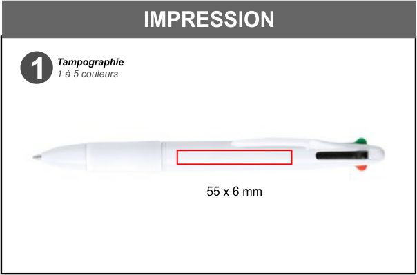 4 encres de couleurs différentes : bleu, rouge, noir et vert.