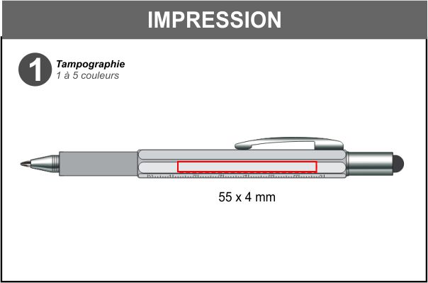 Stylo à action rotative tactile, règle et niveau à bulle.