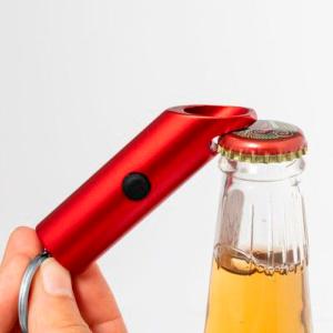 Porte-clés lampe torche 3 LED et décapsuleur en aluminium recyclé.
