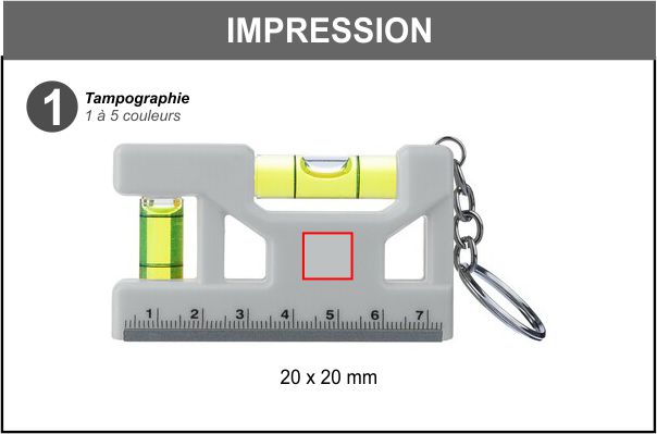 | Porte-clés Niveau - A572  Porte-clés multi-fonctions magnétique en ABS recyclé. Indication de taille sur le dessus, niveau à bulle, règle, bande magnétique au bas pour fixation sur surfaces métalliques. Icône ABS sur le produit. Dimensions : 7,5 x 1,8 x 4,2 cm  |