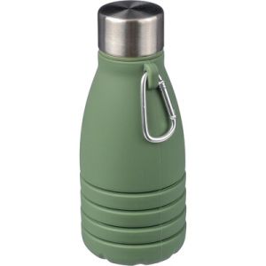 Gourde pliable en silicone, acier inoxydable, PP et aluminium.