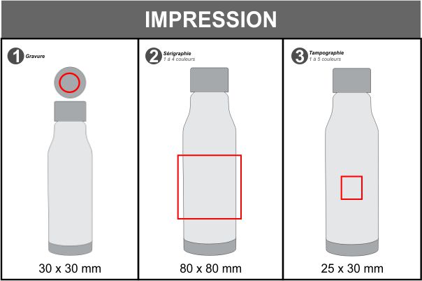 Bouteille en RPET, acier inoxydable et métal.