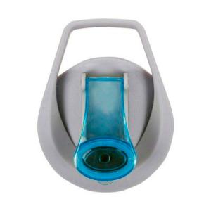 Bouchon gris avec une poignée pour le transport et une fermeture colorée.