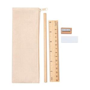 Trousse zippée composée d'une règle, un crayon, une gomme et un taille-crayon.