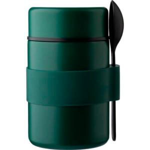 Avec cuillère et poignée en silicone assortie à la couleur du récipient.