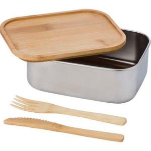 Avec couvercle et couverts (couteau et fourchette) en bambou, combinés avec sangle nylon.