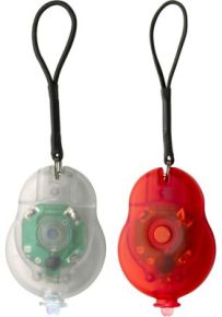 Deux mini phares de vélo, chacun avec 1 LED, fournis dans un boîtier translucide.